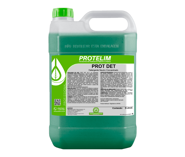 PROT DET is a concentrated, neutral, biodegradable detergent designed for cleaning surfaces, equipment, floors, walls, metal and painted surfaces, utensils in industrial kitchens and food industries in general. PROT DET is a detergent and degreaser for general cleaning, which can be used in the dishwashing process, with high performance, high degreasing and emulsifying power. PROT DET is a concentrated product for general use, contains no perfume and has a high foaming power. PROT DET is a biodegradable product.